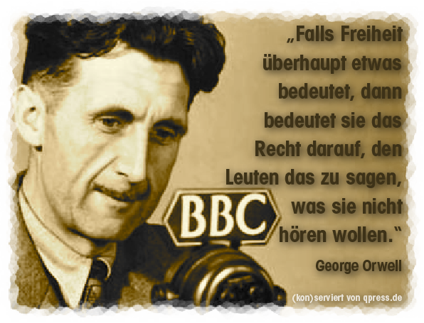 Lassen Sie mich mit George Orwell enden: „"Falls Freiheit überhaupt etwas bedeutet, dann bedeutet sie das Recht darauf, den Leuten zu sagen, was sie nicht hören wollen."
