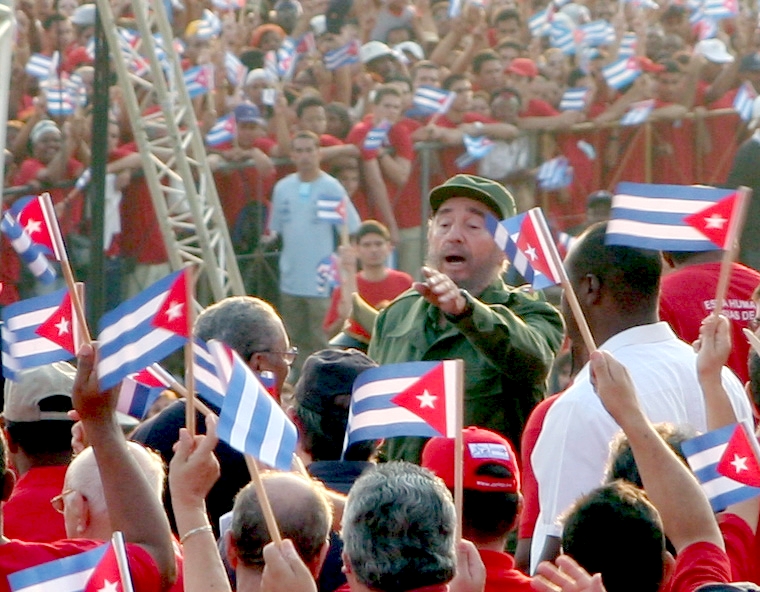 1. Fidel Castro bei einer Kundgebung zum 1.Mai 2005. Foto: Vandrad. Quelle: Wikimedia Commons. Diese ursprünglich nur unter der GNU Free Documentation License (GFDL, Version 1.3) lizenzierte Datei ist in Folge der Lizenzumstellung der Wikipedia auch unter den Bedingungen der Creative Commons Attribution-Share Alike 3.0 nutzbar.