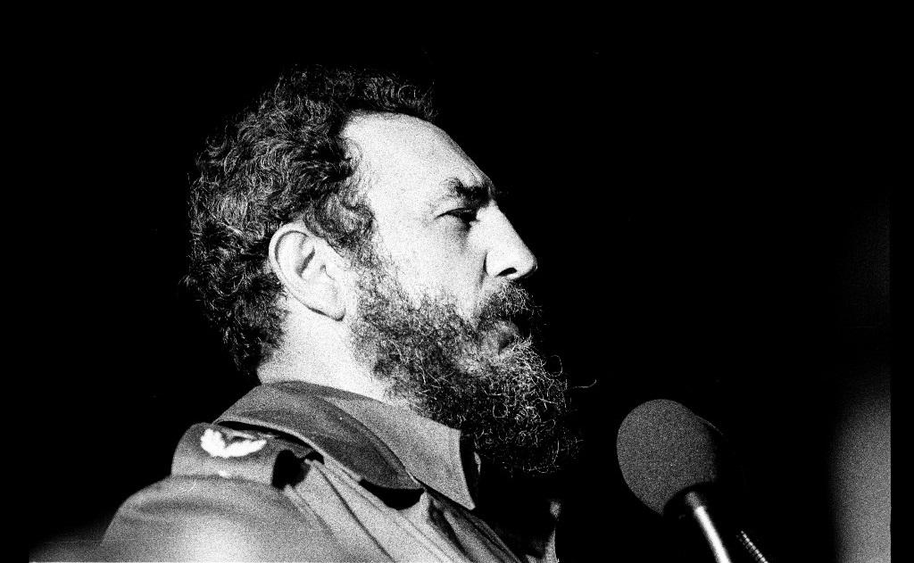 2. Fidel Castro 1978 in Havanna (schw./weiß). Foto: Marcelo Montecino. Quelle: Flickr. Verbreitung mit CC-Lizenz Namensnennung - Weitergabe unter gleichen Bedingungen 2.0 Generic (CC BY-SA 2.0).