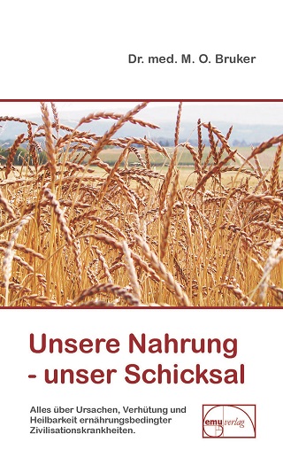 7. Buchcover: "Unsere Nahrung unser Schicksal. Alles über Ursachen, Verhütung und Heilbarkeit ernährungsbedingter Zivilisationskrankheiten“ von Dr. Max Otto Bruker, emu-Verlags- und Vertriebsgesellschaft Ernährung-Medizin-Umwelt; Auflage: 49 (1. Februar 2016), ISBN: 978–3–89189–003–5, Seitenzahl: 451. TOP-TIPP!